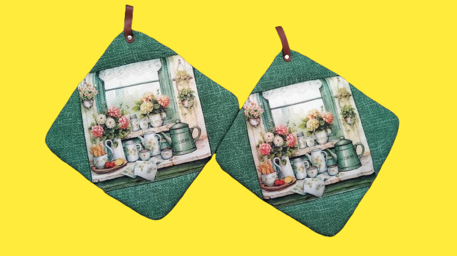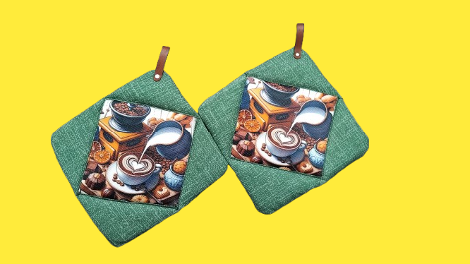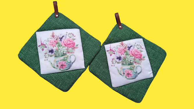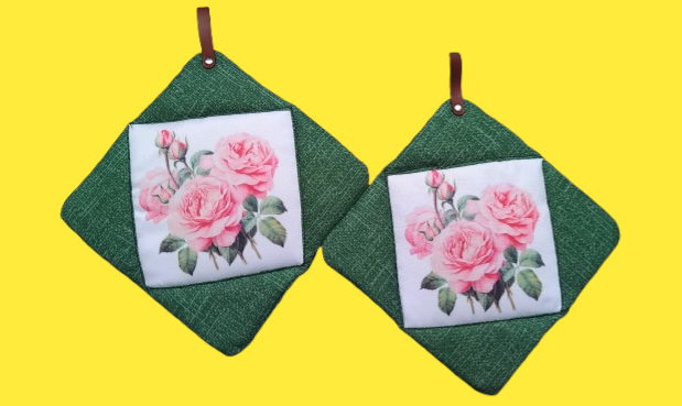 جنس دستگیره کتان نخ، طرح فانتزی و پنل هازان سایز ۱۷ در ۱۷ عایق گرما و حرارت سبک و انعطاف پذیر با کیفیت و کاربردی